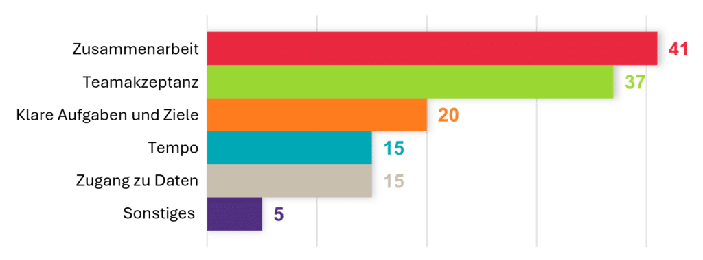 Beides wurde deutlich häufiger genannt als operative Faktoren wie Tempo, klare Aufgaben und Ziele oder Zugang zu Daten.
